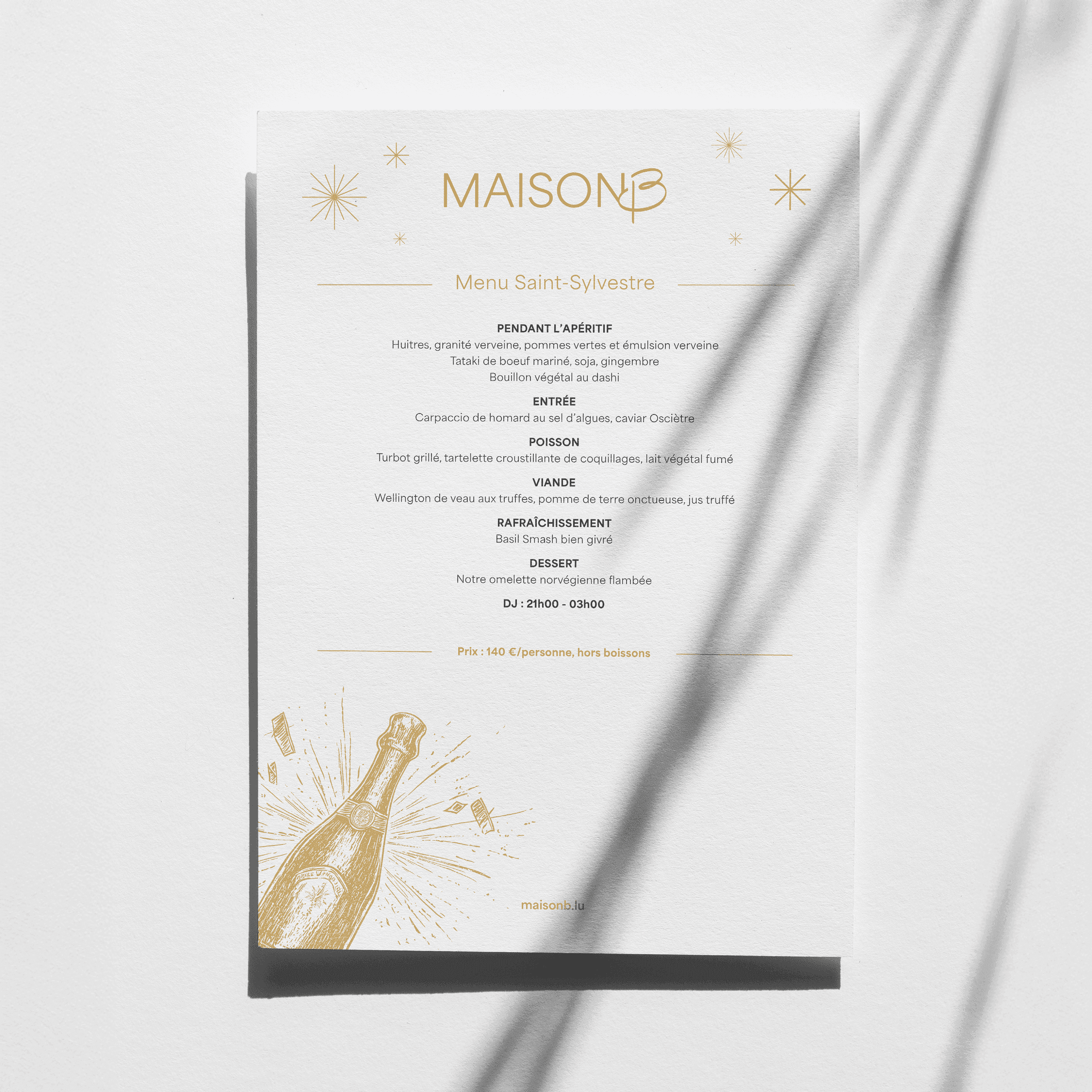 The comprehensive branding extends to business cards, specialized menus including the “Menu St Sylvestre”, banners, letterheads, and forthcoming promotional gadgets. Our photography and website design for Maison B capture the unique ambiance of the restaurant, enticing visitors to experience the blend of luxury and comfort firsthand.
