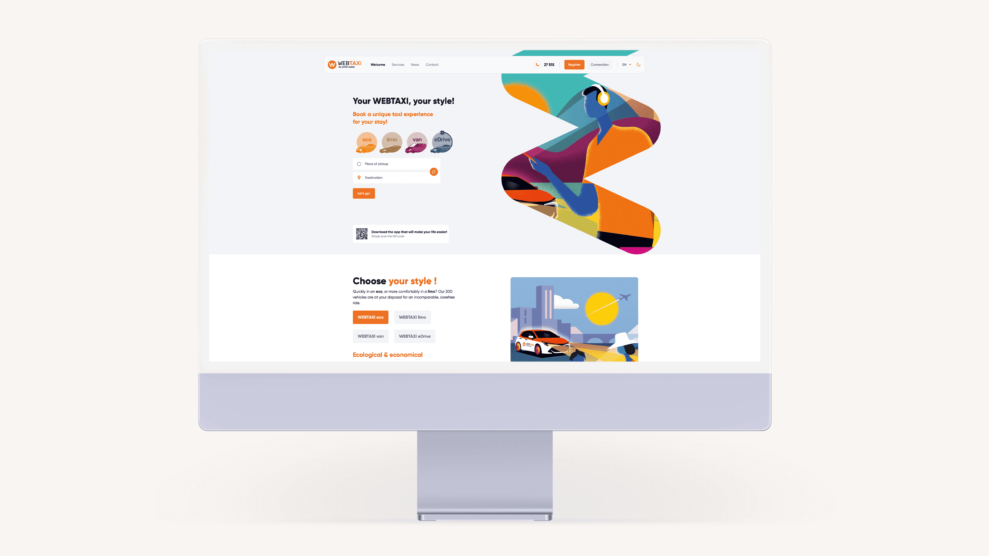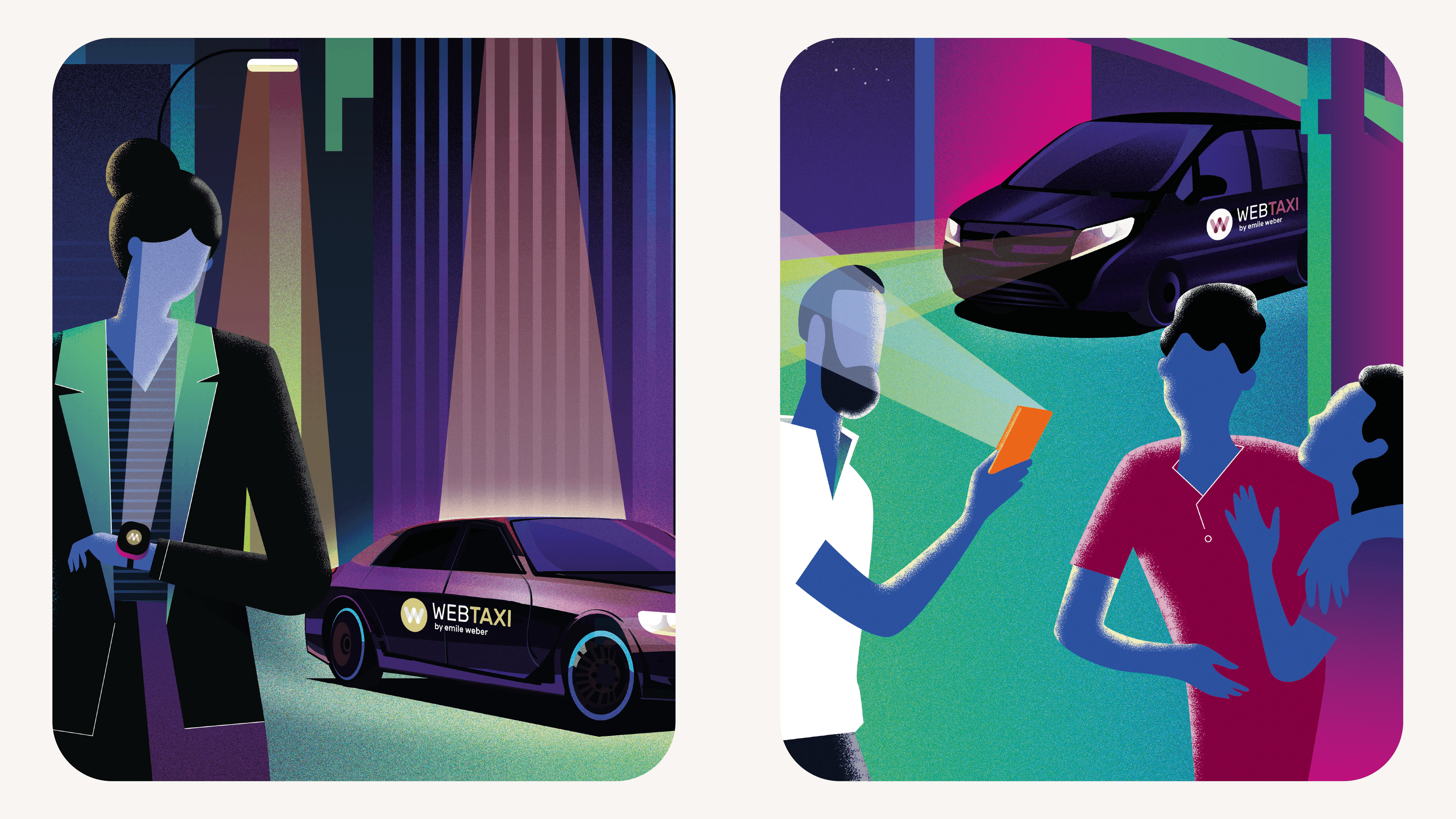 The new website boasts a modern, responsive design ensuring a smooth user experience across all devices. We introduced customized illustrations that highlight the high level of service Webtaxi offers, creating a distinctive brand universe that is both engaging and functional. These illustrations are complemented by simple, clear graphic elements that guide users effortlessly through the booking process.